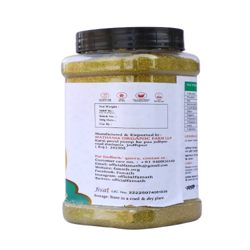 Famath Coriander Powder is a high-quality, cold-processed spice that retains its vibrant aroma, flavor, and health benefits. Its mild, nutty-citrus profile makes it versatile—from everyday cooking to traditional wellness uses.